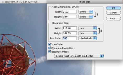 Image > Image Size > Resolution : Set to "300"