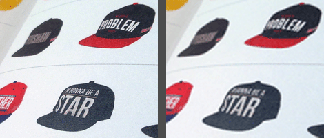 The image on the left here is at 300dpi. The image on the right is only 72dpi. We always preflight every file before going to print and try to advise when you have included lo res images.