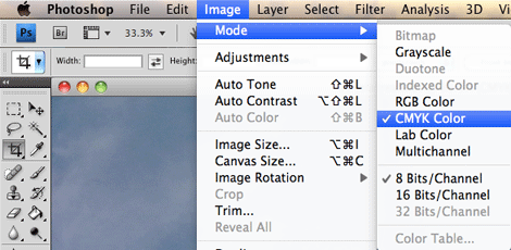 Image > Mode > CMYK Color
